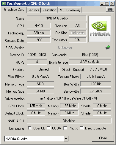 1st NVIDIA workstation card based on higher clocked GeForce 256 core.