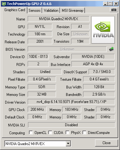 Quadro2 MXR/EX GPUZ