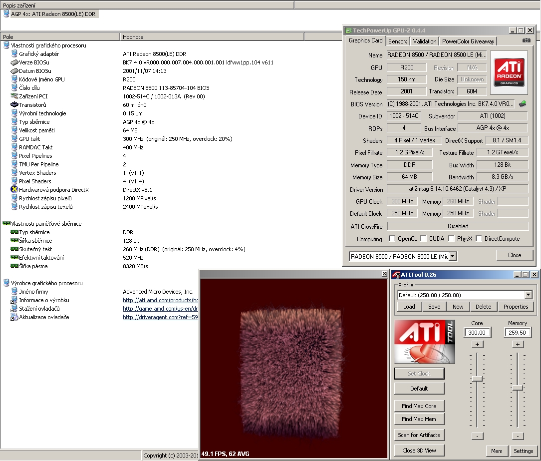 Card is based on R200 core, having mostly 64MB memory on 128-bit bus. Later 128MB cards were on market. Card was easilly overclockable to 300MHz on GPU and memory chips up to 595MHz according to some people. I tried only 300MHz on core and 520MHz on memory chips, it worked stable.