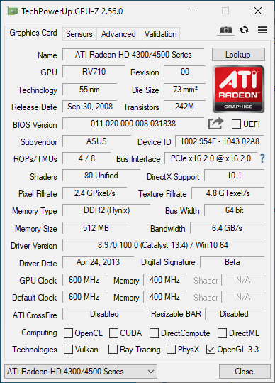 Radeon HD 4350 GPUZ