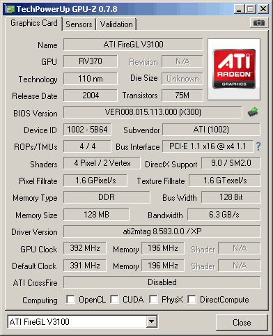 FireGL V3100 GPUZ