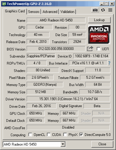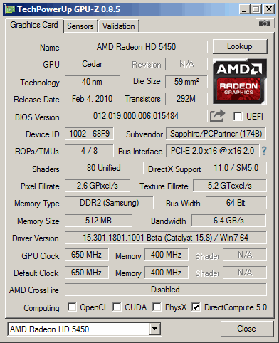 Sapphire HD 5450 GPUZ